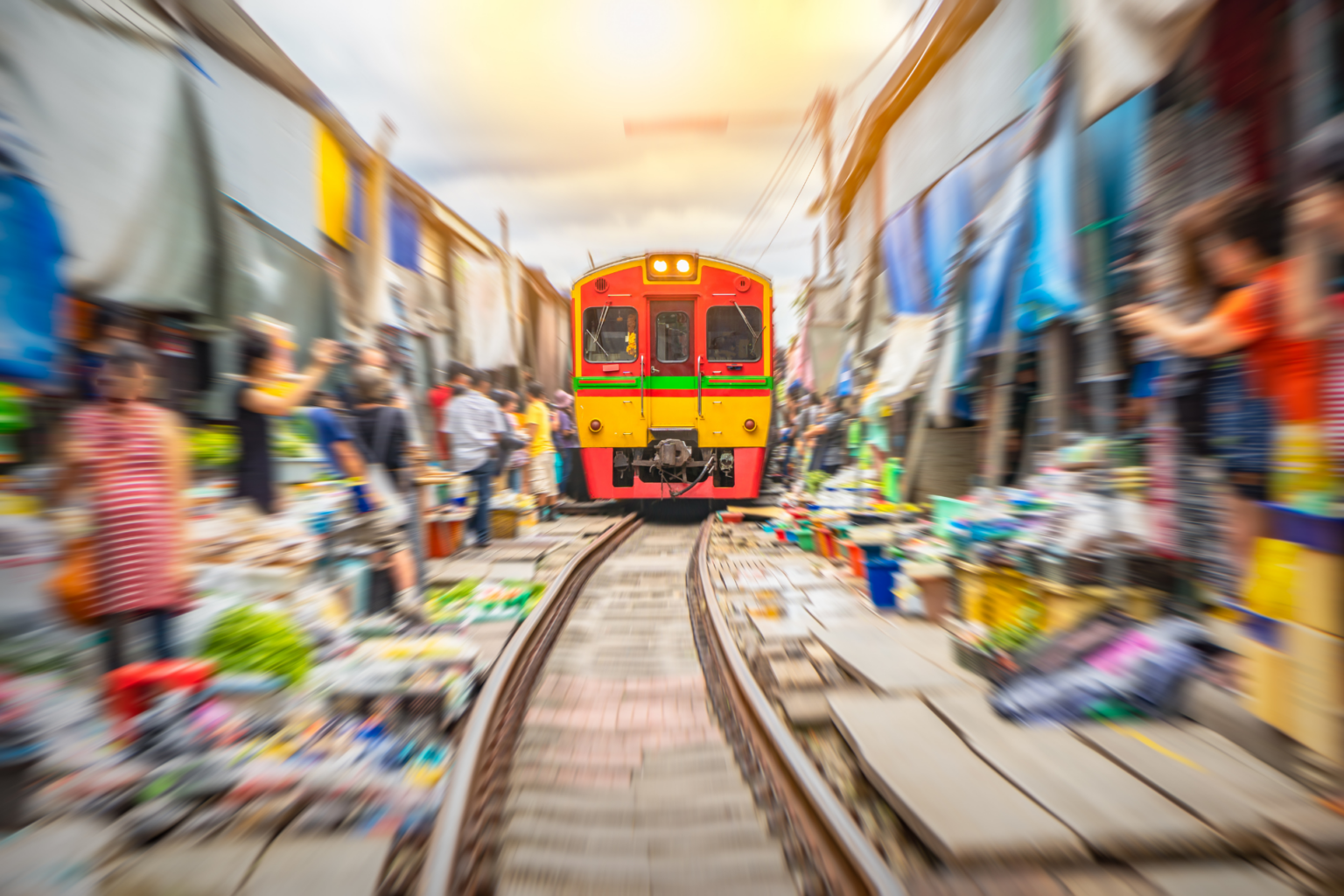 After breakfast, depart for a visit to Mahachai Market, a bustling hub that offers an authentic glimpse into daily Thai life. Stroll through the vibrant stalls before continuing to Samut Songkhram, home to the renowned Umbrella Market. This unique market is set along railway tracks, where vendors swiftly fold their awnings when a train approaches, only to resume business moments after it passes—a fascinating and memorable sight. Enjoy lunch at a local restaurant before heading to the iconic Damnoen Saduak Floating Market. Here, vendors sell an array of local foods, fresh fruits, and handmade products from their traditional wooden boats. Take time to explore the lively market, capture photographs, or hire a paddling boat for an up-close experience of this historic trading venue. Following the market visit, embark on an exhilarating long-tailed boat ride. Navigate the winding canals to witness serene landscapes, remote villages, lush gardens, and thriving plantations. Throughout the day, savor the opportunity to try a variety of Thai delicacies, including rice noodle soup, Pad Thai, and the beloved dessert mango with sticky rice.